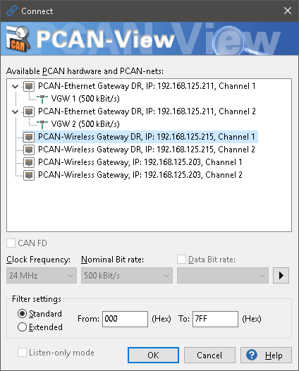 从版本4开始,PCAN-View支持新CAN FD标准 (CAN with Flexible Data rate) 主要特点是更高的带宽用于数据传输。