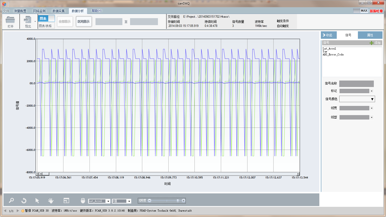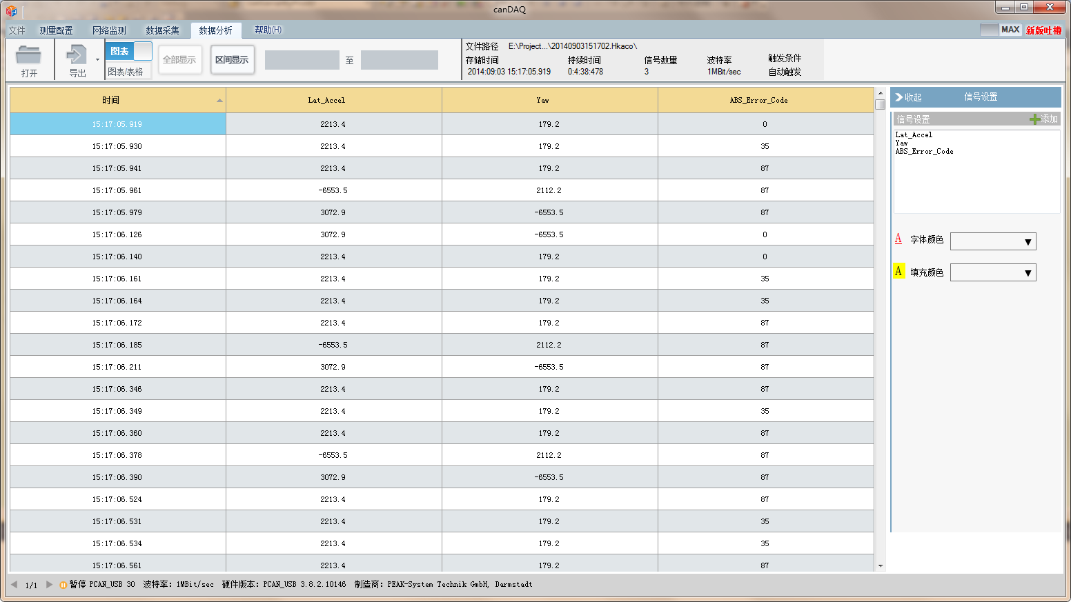 CANDAQ软件是集CAN总线网络检测、数据采集和数据分析为一体的综合型应用软件,由虹科独立研发完成。可以同时查看、存储和分析多个网络上的报文流动,支持行业标准DBC文件。 |