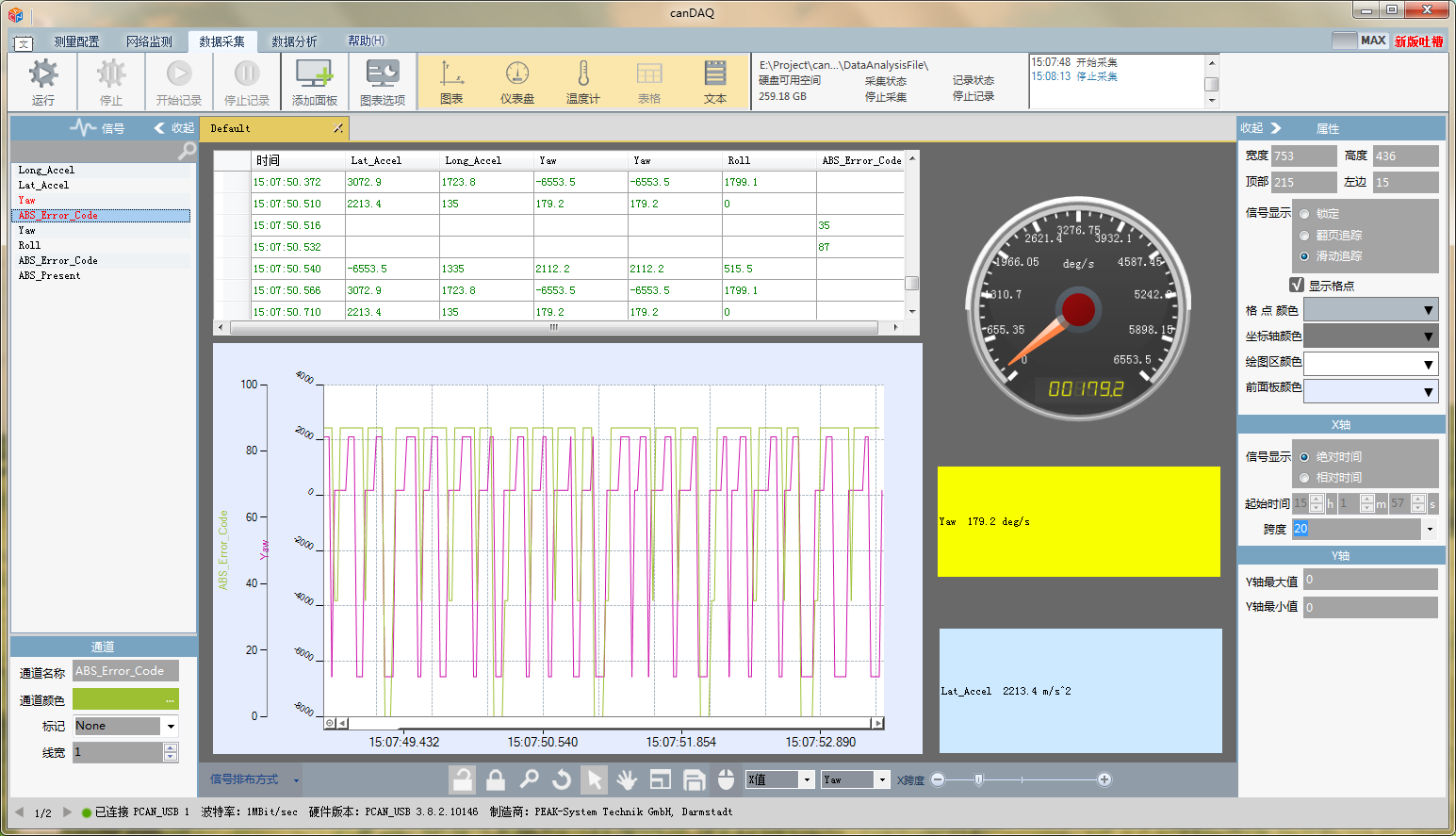 - 实时监测CAN信号的变化趋势,可以用图表或者各种仪表控件来显示