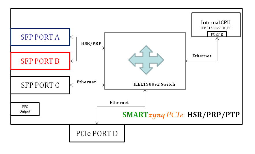 - 双附加节点(DAN):2个三速冗余端口(SFP笼子端口A和端口B)用于IEEE1588v2的HSR/PRP网络