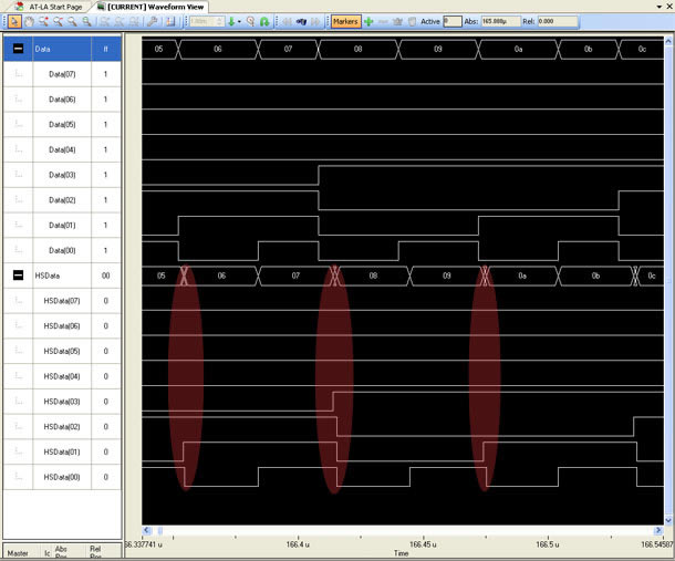 Thanks to the GigaView technology the AT-LA500 is capable of performing timing error debugging despite of general purpose logic analyzers that are traditionally unable to perform such kind of analysis. The GigaView technology provides a 2ns timing resolution with up to 4 MSamples depth simultaneouslywith a 666 ps high resolution timing within the same acquisition and using the same probes.