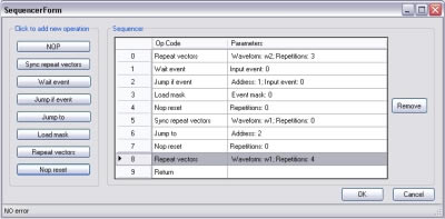 The execution flow of the edited waveforms can be easily defined with a dedicated sequencer editor form.
