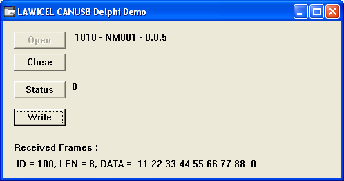 CANUSB VCP Samples. See www.can232.com for Delphi samples, these work nice with VCP drivers (VCP is not recommended for higher speed, this is only for compability with CAN232 applications).